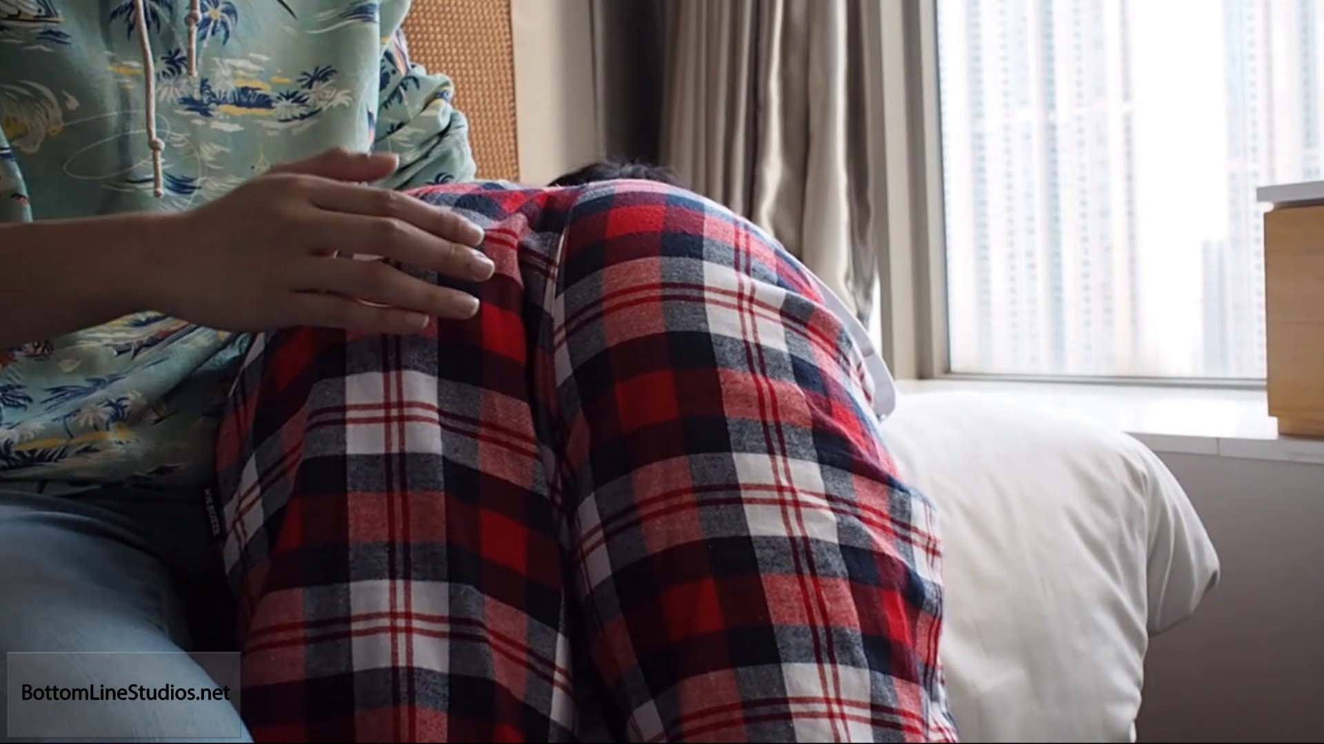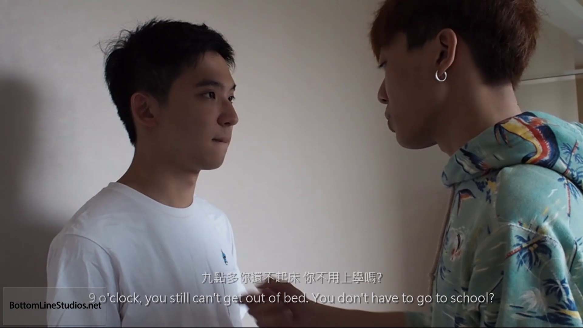 Peter Lam has overslept and is late for school yet again. Jonathan Li has had enough and soundly spanks, brushes, and paddles his errant younger brother.